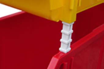 2、背挂零件盒标准配备防尘标示盖、双色标示卡等配件。我司开发新型背挂零件盒加强底座结构,保证零件盒放置的稳定性,零件盒中部设计有装配滑槽,可以有效防止零件盒在运输过程中的挤压破损。